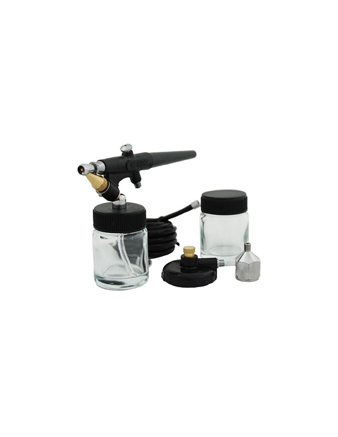 Pulverizador Dismoer D-180 Múltiples usos. Diámetro de la boquilla: 0.8mm. Contiene dos frascos de cristal, uno de ellos con sifón.