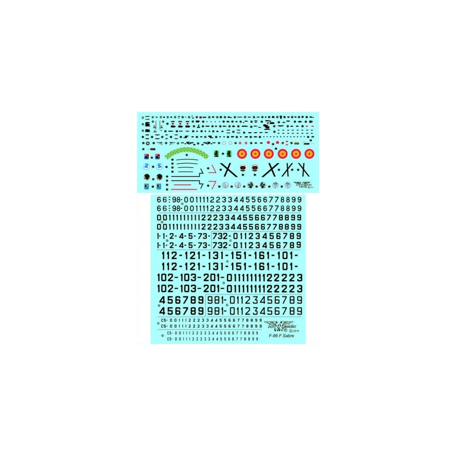 Incluye las distintas numeraciones, escarapelas, escudos de escuadrón y estarcidos. Escala 1/72