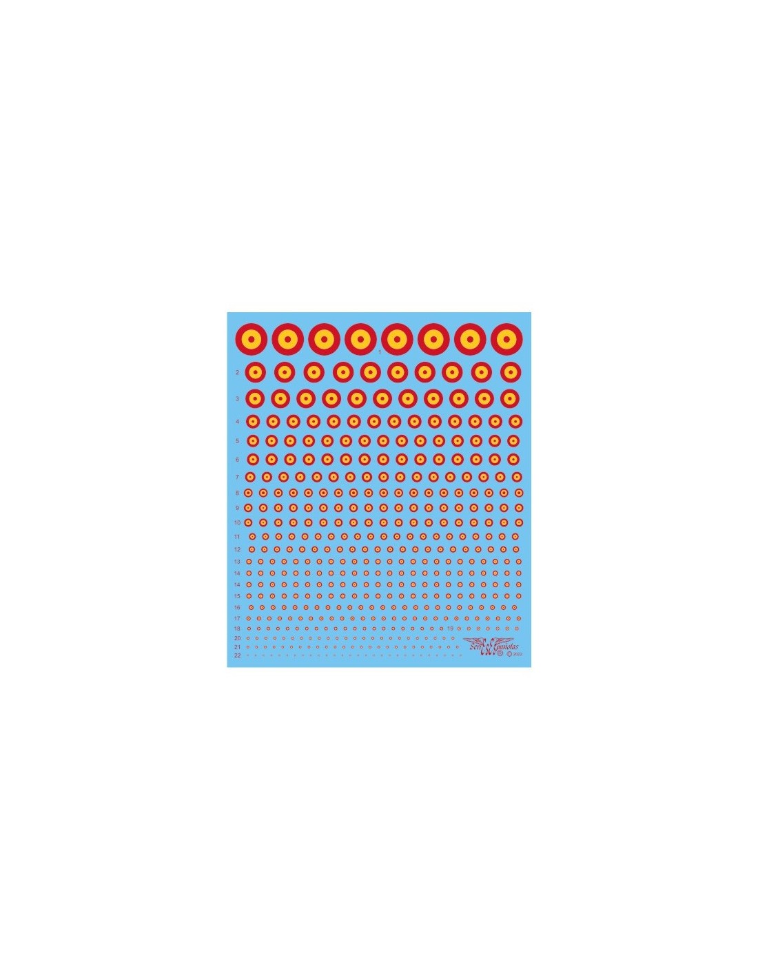 DOS HOJAS DE CALCAS CON 443 ESCARAPELAS A ESCALA 1/144 EN 22 TAMAÑOS DIFERENTES para la práctica totalidad de las aeronaves del Ejército del Aire, ARMADA y FAMET.
