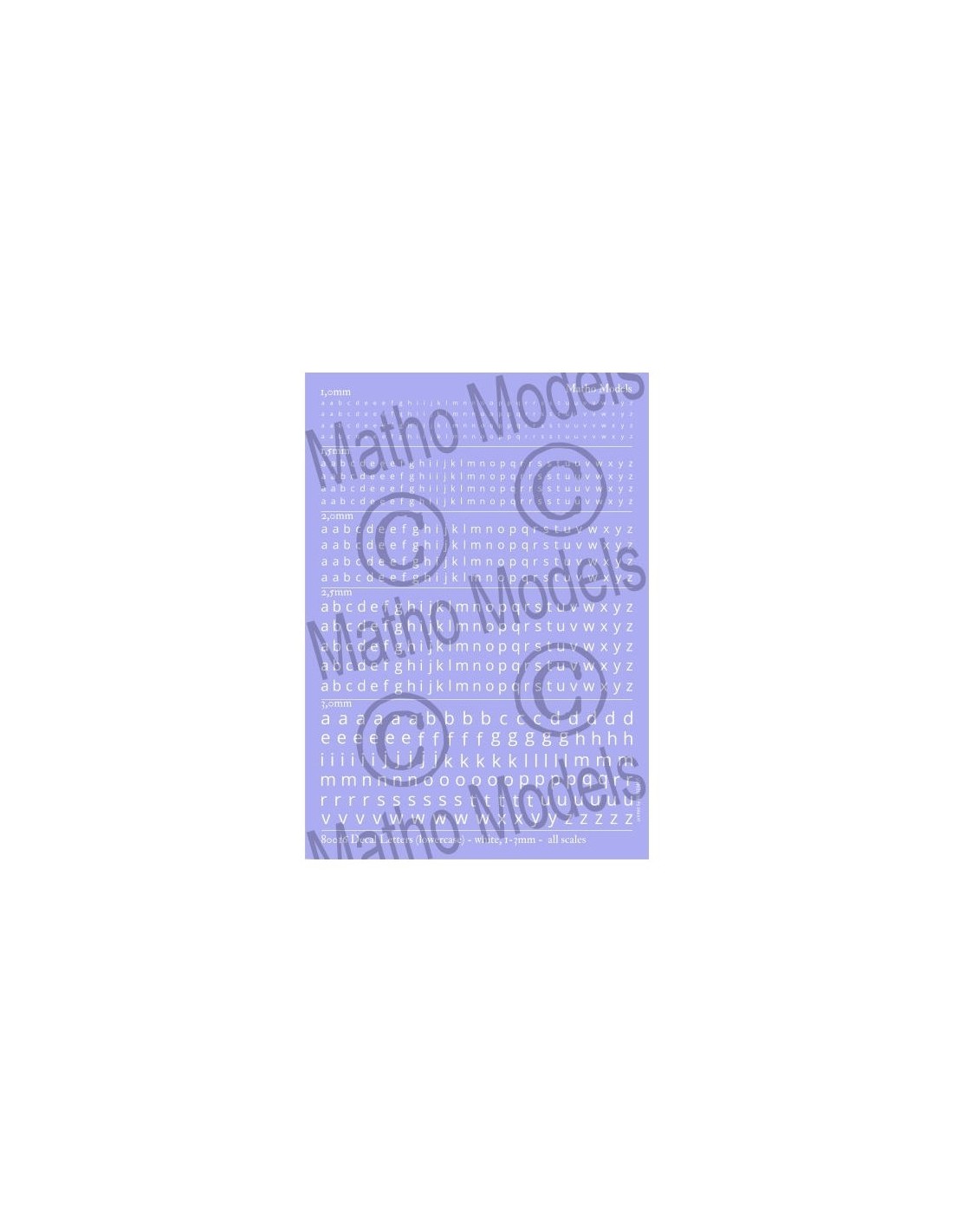 Contiene 1 hoja de tamaño A6 con varias calcomanías al agua. Esta hoja contiene pequeñas letras negras (minúsculas), disponibles en diferentes alturas. La altura se indica en la hoja, por lo que es fácil elegir la altura adecuada para sus necesidades.