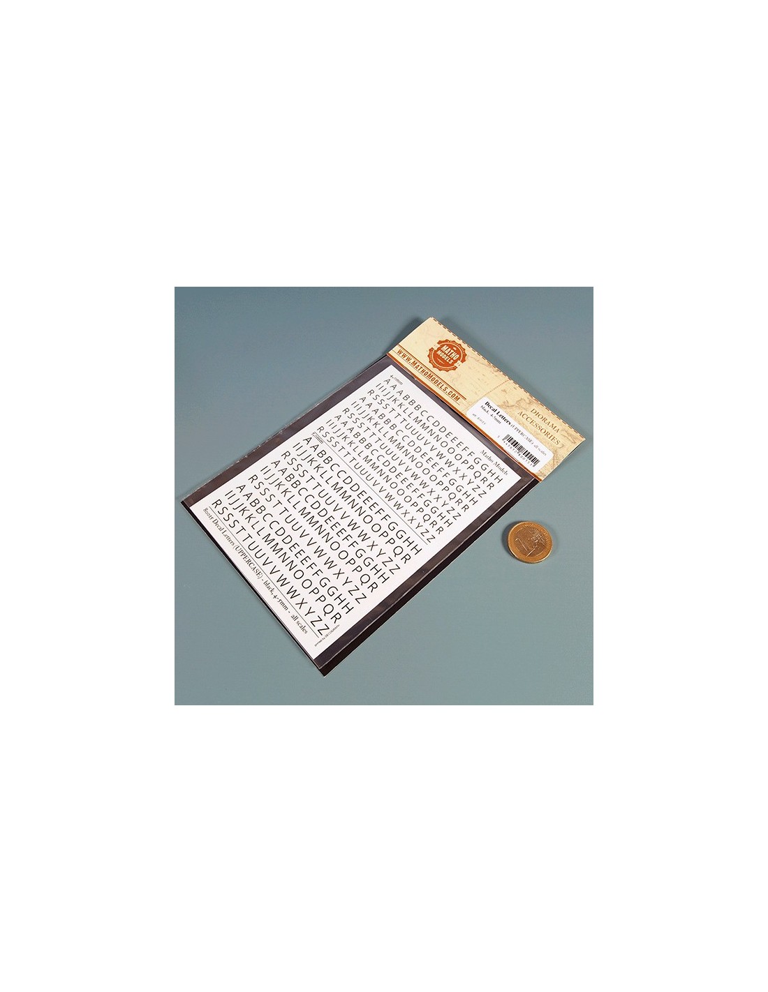 Contiene 1 hoja de tamaño A6 con varias calcomanía al agua. Esta hoja contiene pequeñas letras negras (minúsculas), disponibles en diferentes alturas. La altura se indica en la hoja, por lo que es fácil elegir la altura adecuada para sus necesidades.