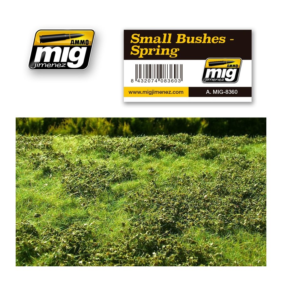 Este producto representa de una manera realista pequeños arbustos en colores Primaverales. Se puede usar fácilmente y adaptarlo a formas de carreteras o caminos para crear grandes escenarios o dioramas. Se puede pegar fácilmente con cola blanca. La forma más efectiva de ambientar nuestros vehículos o ayudarnos a hacer un diorama. Dimensiones 230 x 130 mm.