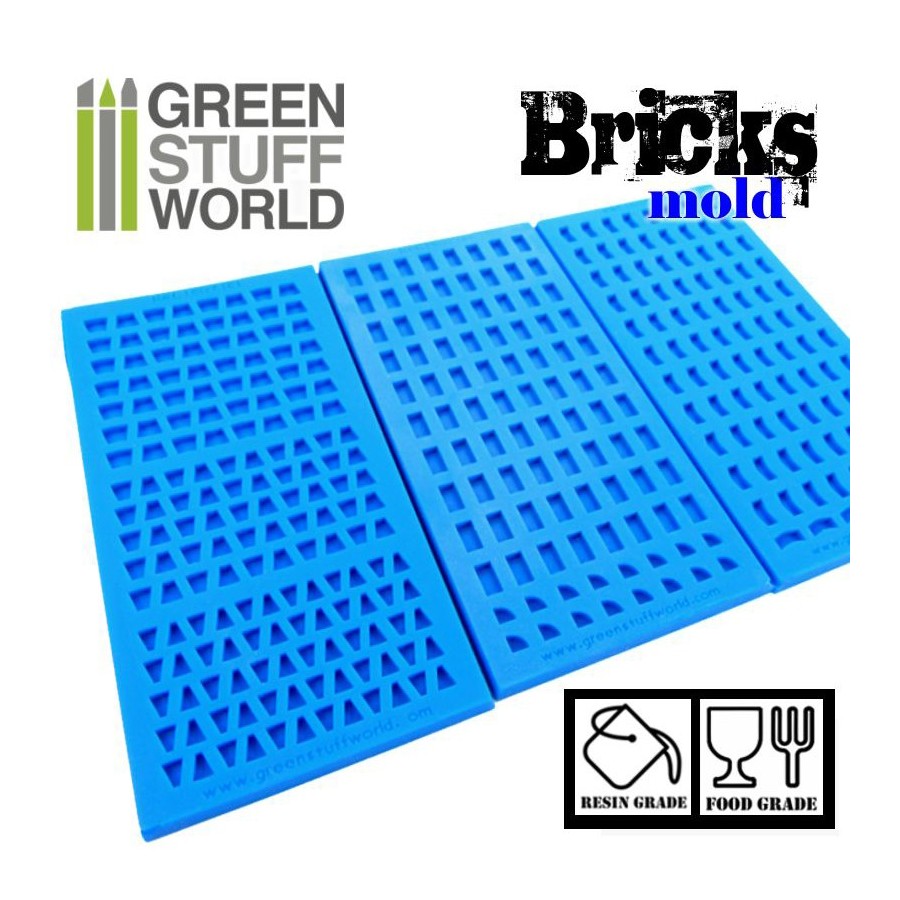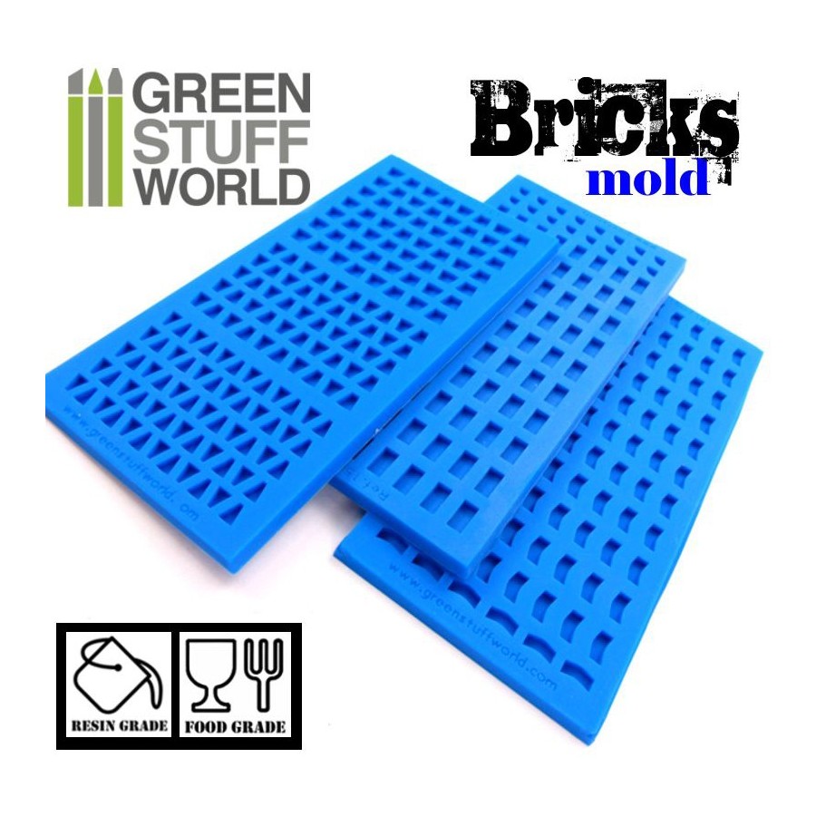 Moldes de silicona flexibles para crear infinitas cantidades de ladrillos con todo tipo de materiales, incluido resinas. Dimensiones totales de los moldes: 6x12cm