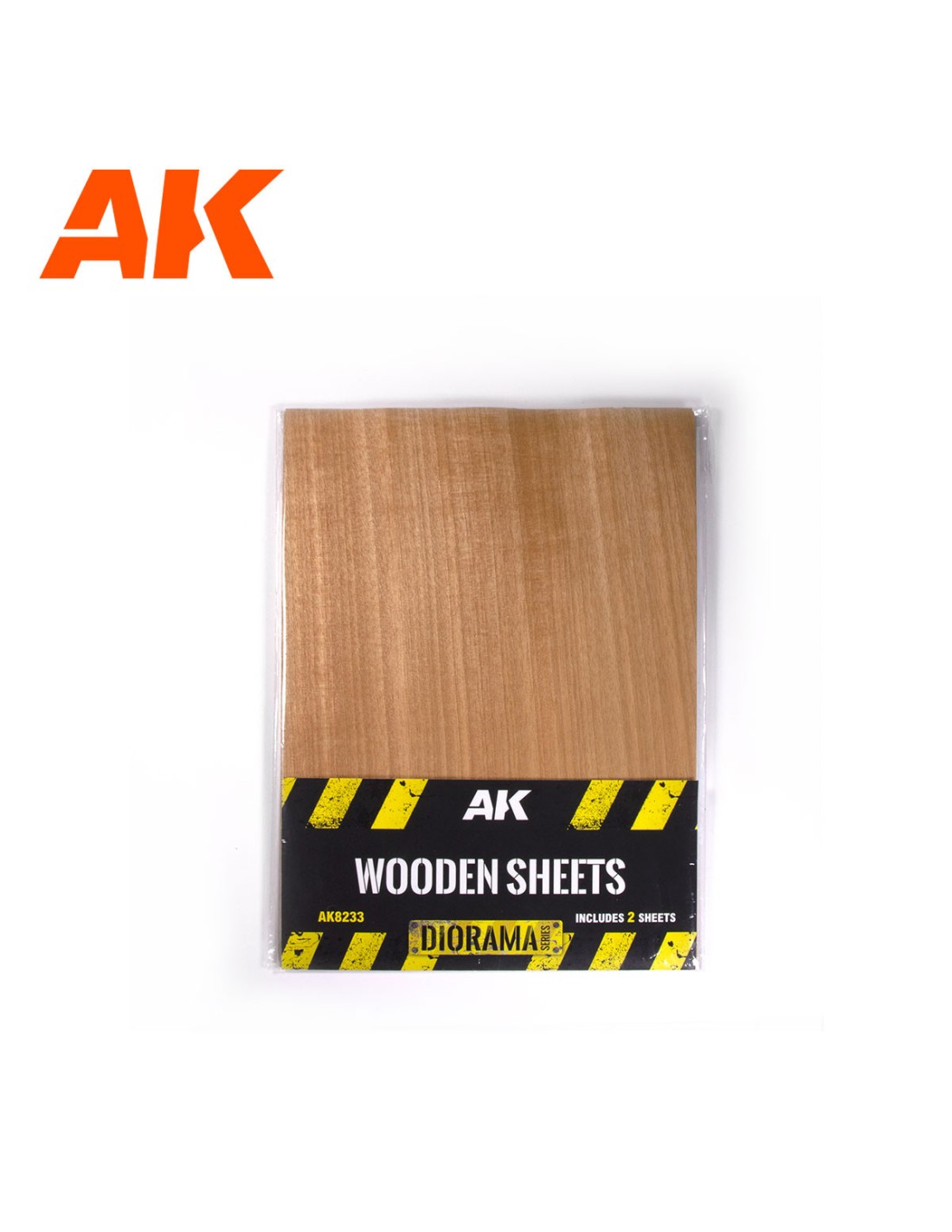 La referencia AK8233 contiene dos planchas de madera natural muy fina del tamaño A4.