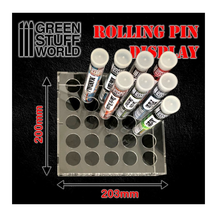 Expositor de rodillos fabricados en metacrilato de alta calidad. Piezas cortadas con laser y ajustadas para su montaje sin el uso de pegamentos. No obstante, si se quisiera reforzar el expositor final, recomendamos la utilizacion de pegamentos que no blanqueen.