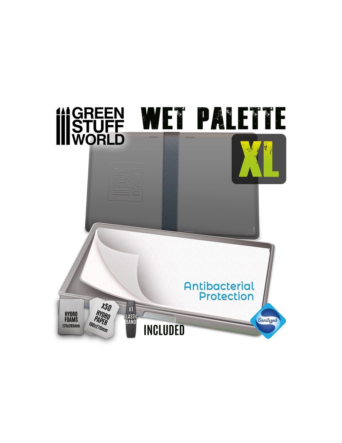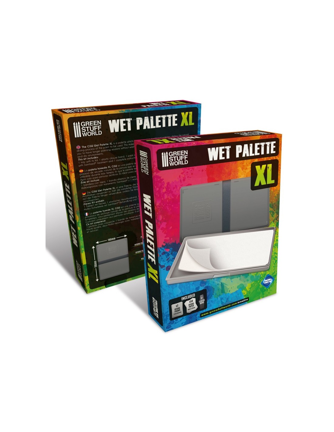 La paleta húmeda GSW es una paleta que, a diferencia de las paletas tradicionales, retrasa el proceso de secado natural de la pintura que se vaya a utilizar. Esto hace que la pintura de la paleta siga siendo utilizable durante mas tiempo, lo que permite tener sesiones de pintura más largas manteniendo la pintura fresca y sin desperdiciarla.