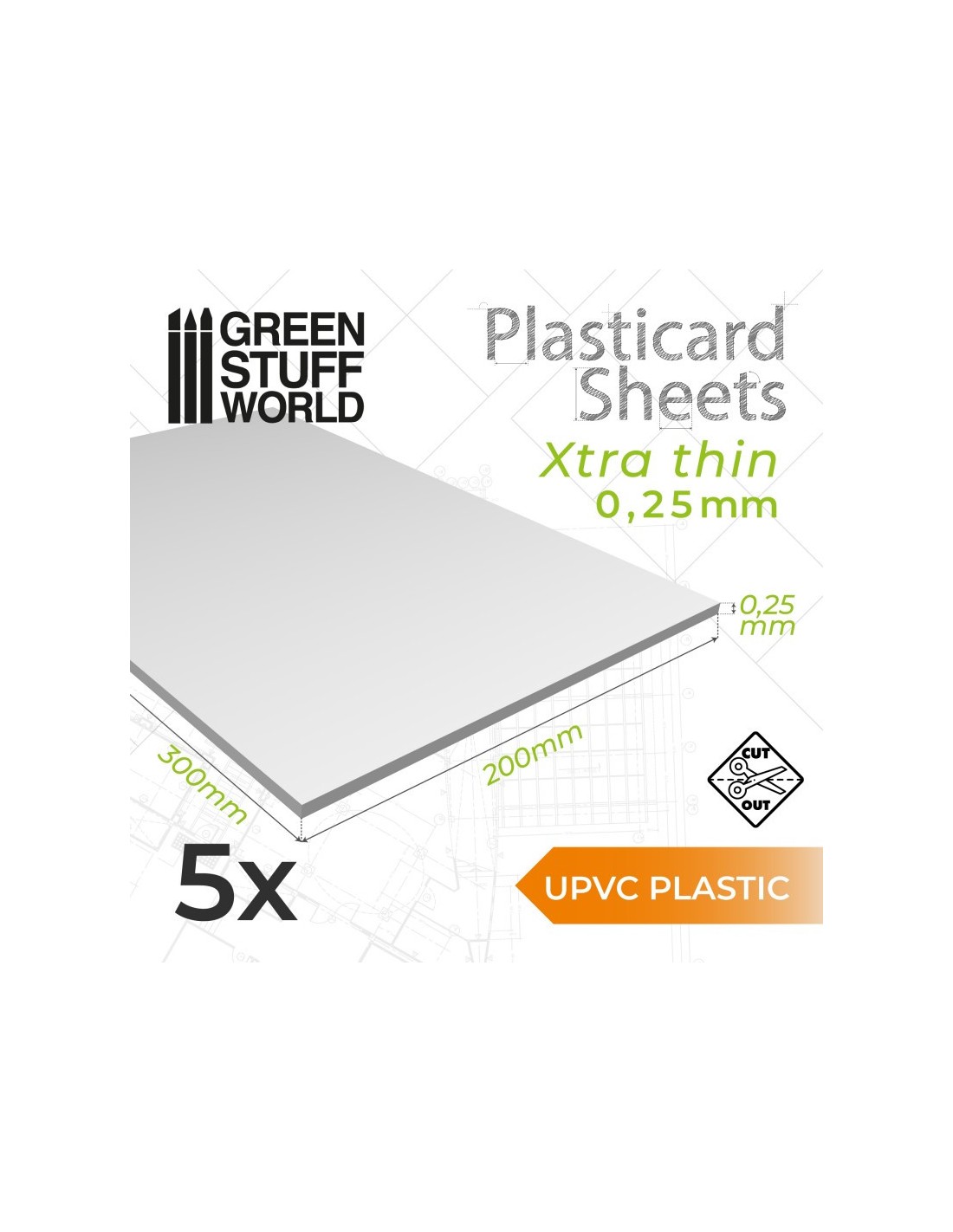 El plasticard es un material plástico también conocido como planchas de estireno. con unas propiedades físicas muy atractivas para el modelismo. Según el espesor se corta muy bien con una simple cuchilla. pega perfectamente con los plásticos y ademas es muy maleable. Se puede comprar tanto en láminas de diferentes grosores tanto lisas como texturizadas. tubos o incluso perfiles con forma de viga.
