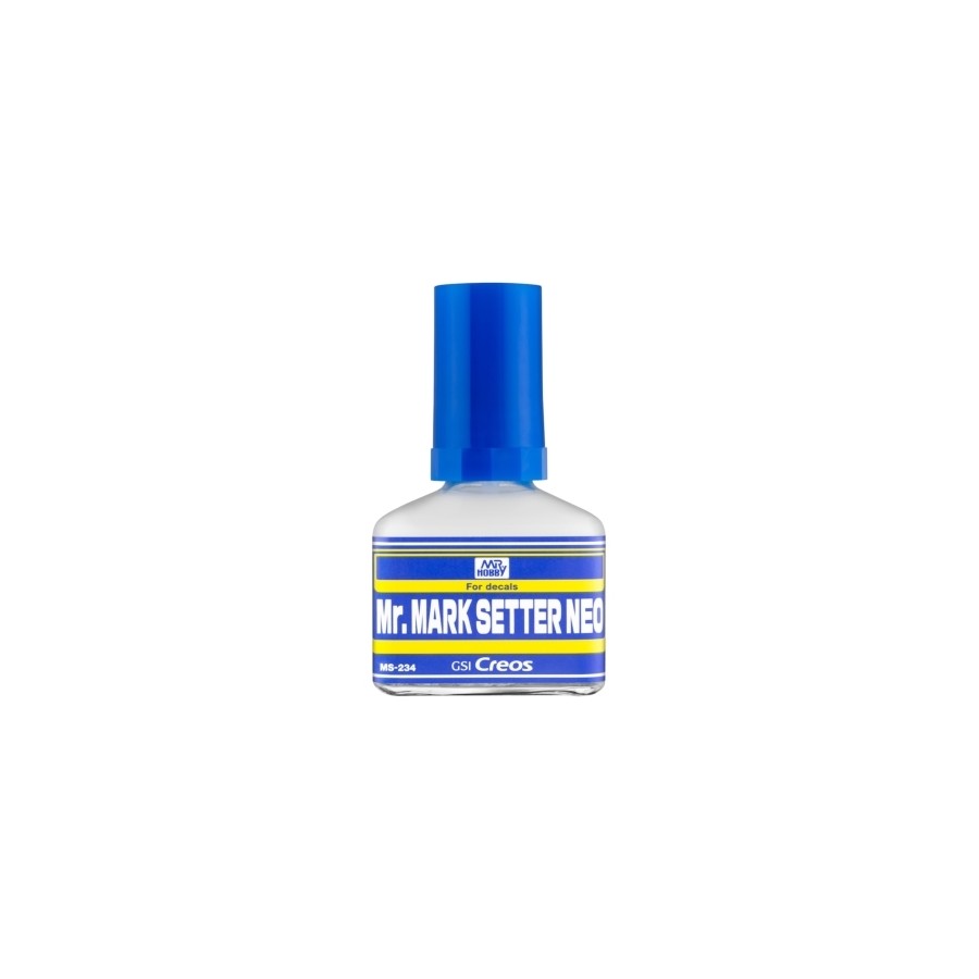 En el pasado, MR MARK SOFTER fue usado unicamente para adherir las calcas. Sin embargo ahora, usando MR MARK SOFTER junto con MR MARK SETTER (el cual da a la calca mayor adherencia) hace mucho más facil fijar las calcas a los modelos. Primero, el area en el cual la calca será ubicada tiene que estar pintada y posteriormente la calca será aplicada. Después que las burbujas han sido quitadas presionando con un bastoncillo de algodón, una capa de MR MARK SETTER es aplicada y dejada secar. Ya que la calca ahora tiene un mayor poder de adhesión, el brillo del film de la calca puede ser adaptado a cualquier superficie. Es perfecto incluso para las mas pobres calcas del mercado fabricadas en modelos Europeos del Este. Las calcas tendrán mucha mejor adherencia si la superficie es preparada con una capa de barniz BRILLO, de modo que la calca sugiere como si estuviera pintada a mano. Se recomienda aplicar SETTER si la calca es gruesa.