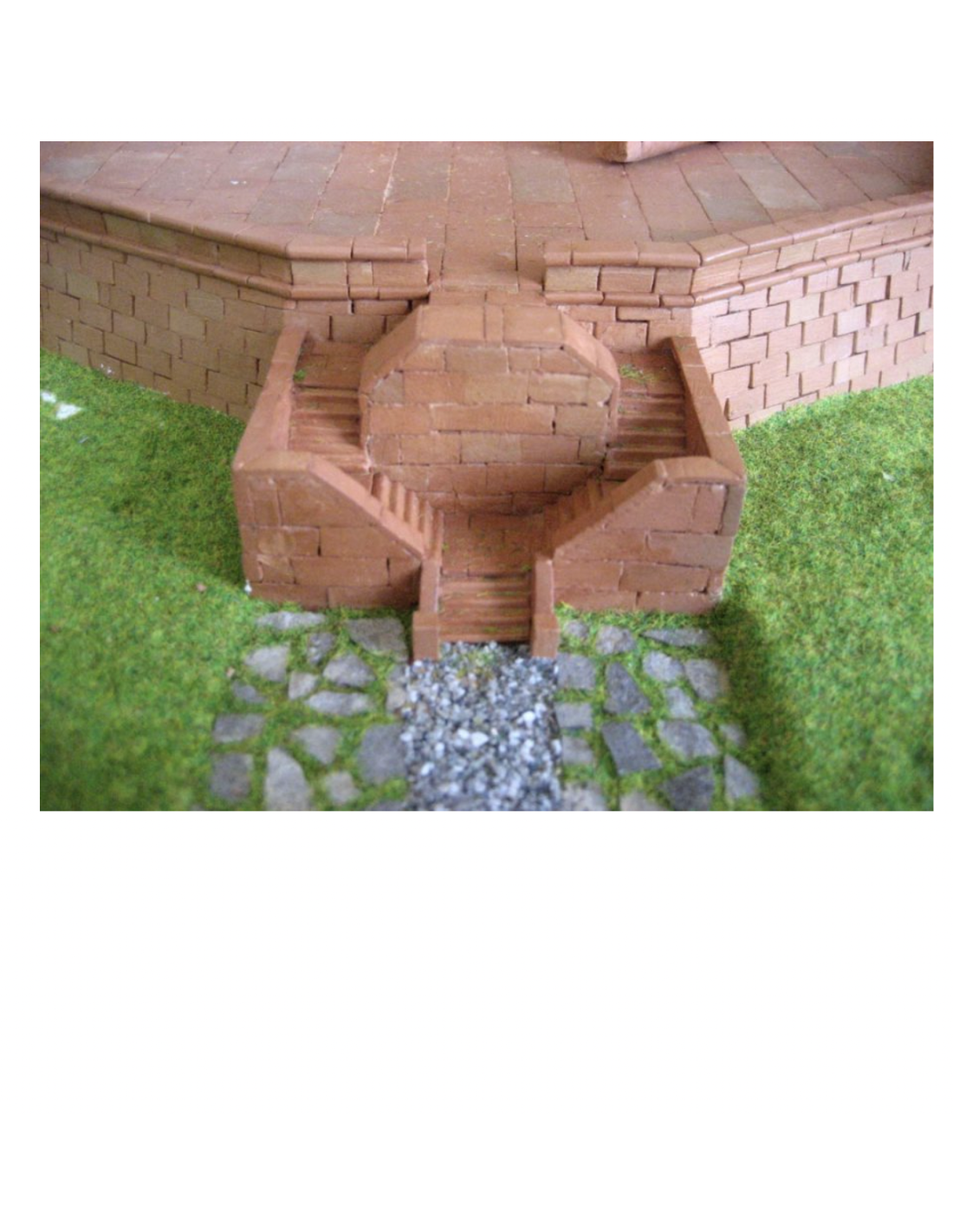 Para concluir la construcción, proporcionamos material de dispersión como grava, musgo y flocaje, para decorar el entorno del monumento al gusto del cliente.