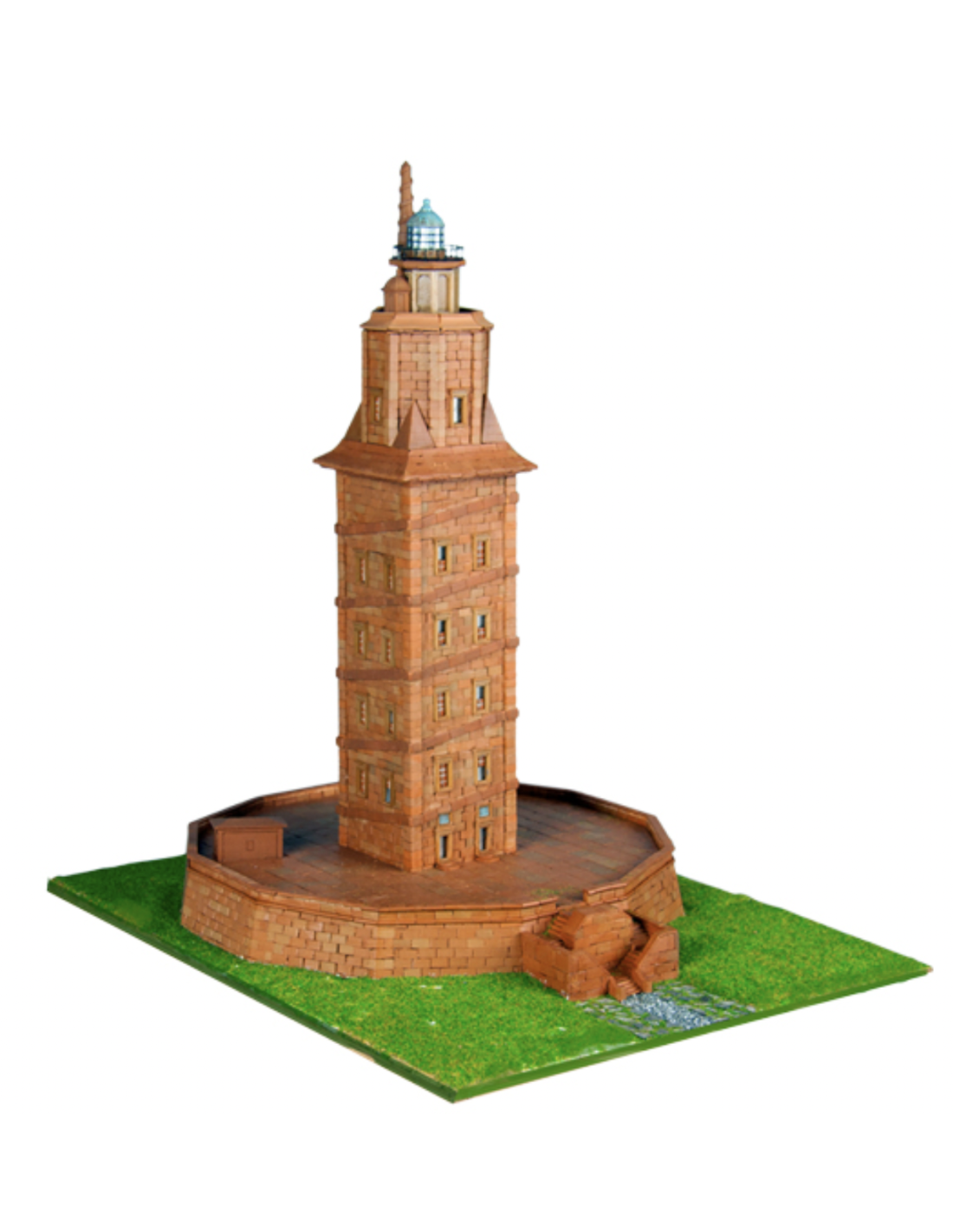 Kit de construcción en cerámica de Keranova, modelo 30108. Es una reproducción exacta de la famosa Torre de Hércules (A Coruña), a escala 1/150 (30x36x44 cm).