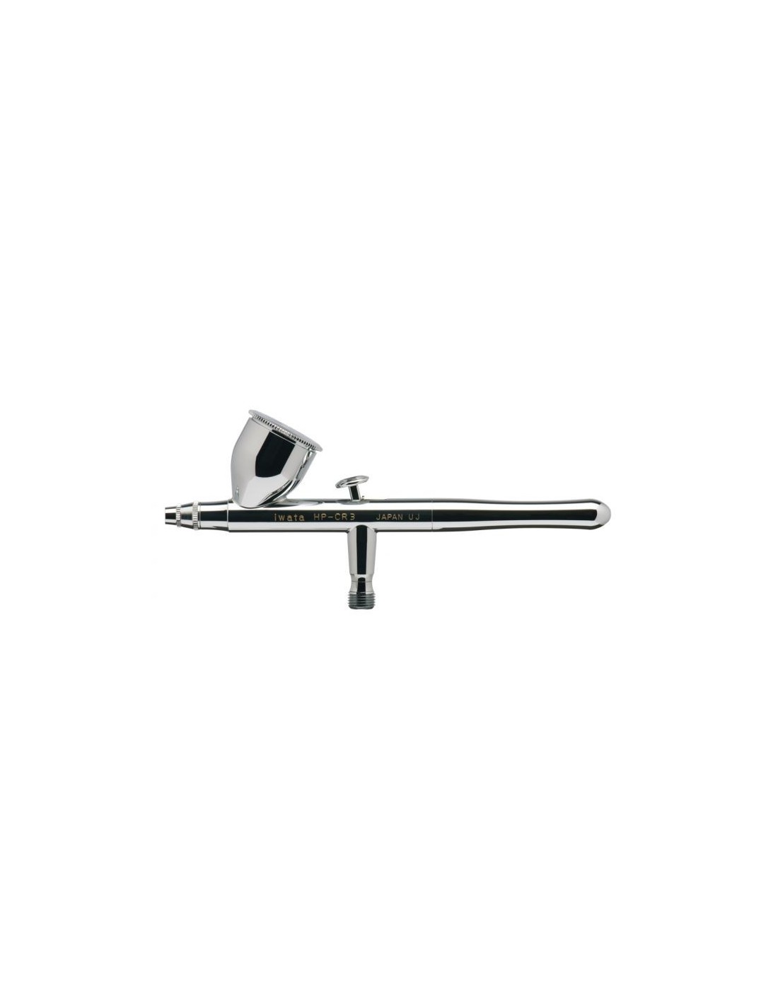 Exclusive to Revolution Series, HP-CR3 Gravity Feed Dual Action airbrush features a unique, comfort handle and an R3 Head System. If you love how our Revolution BR sprays but crave a larger fluid cup, then the Iwata Revolution CR3 is for you. Iwata Revolution HP-CR3 has a 0.24 oz 7 ml fluid cup with lid that is ideal for color mixing.