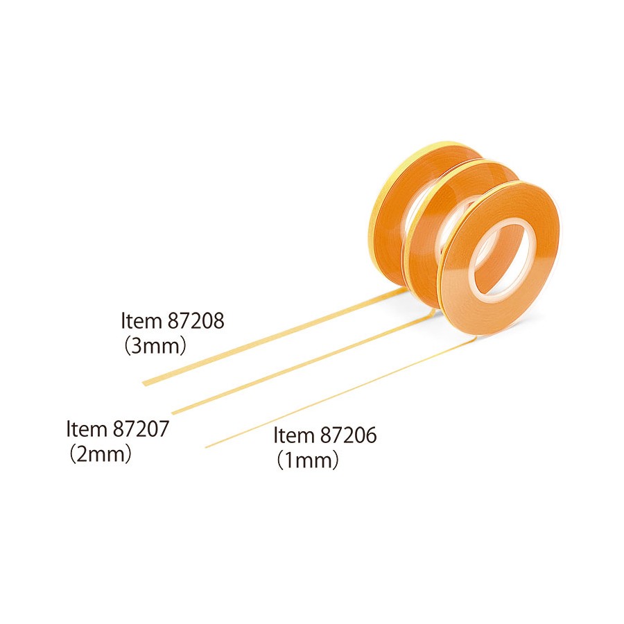★This is dedicated masking tape developed for plastic models. ★Features superior adhesion, yet at only 0.08mm thick, it retains the flexibility to cover various non-flat surfaces. ★At just 1mm wide, it is perfect for use on car model windows, aircraft model canopies and on other fine jobs. ★Plates on either side of the tape help stop it losing shape or getting dust and dirt stuck to it. ★Plastic core ensures minimal dust is produced. ★Length: 18m, width: 3 mm.