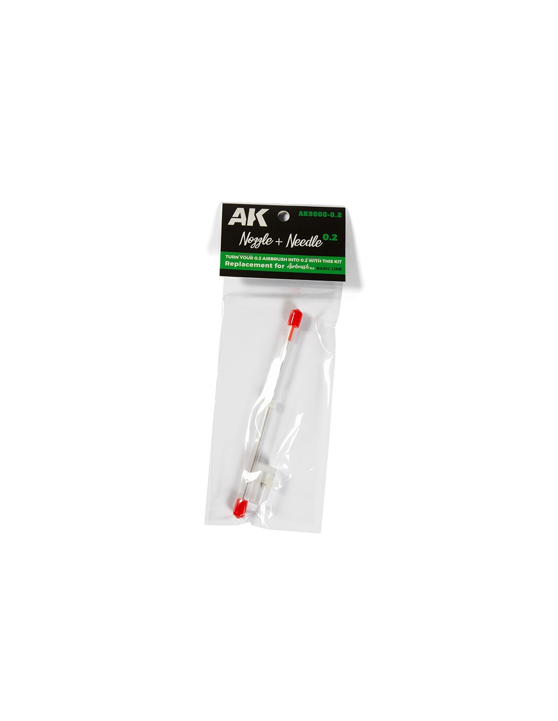 Convert your 0.3 AK9000 airbrush basic line to 0.2 with this needle + nozzle kit.