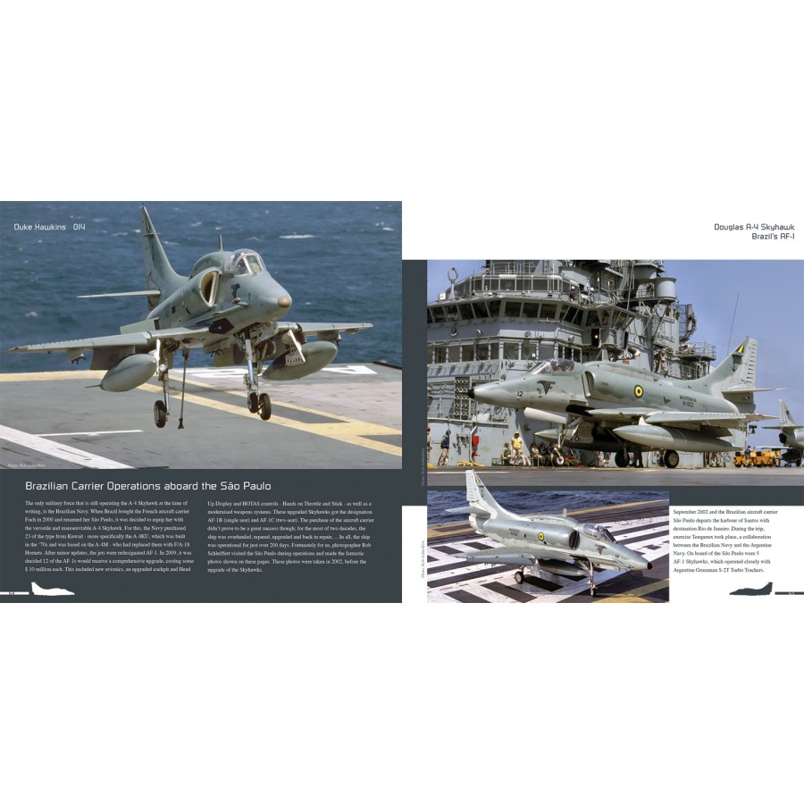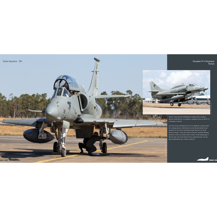 This is a 116 page book offering a really close look at the most recent versions of the Skyhawk. Nearly 300 photos show the fuselage, wings, air intakes, landing gear, gear bays and cockpit, including a 24-page maintenance chapter. A lot of great action photos and air-to-air photos are included of aircraft of the Air Forces of Argentina, Brazil and Israel, as well as those operated by Top Aces in Germany.