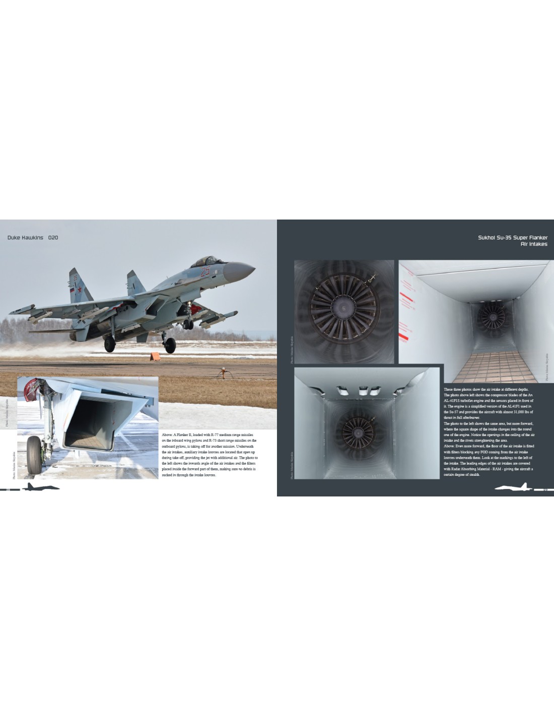 Creating a book on the Sukhoi Su-35S Flanker E, or Super Flanker, is something really special. It is one of the most modern fighter jets around and many parts of it have never been shown in close-up. The 4++ generation fighter might resemble its predecessor, the Su-27, a lot but it is in many respects a completely new aircraft: new engines, new cockpit, strengthened fuselage and wings and of course: thrust vectoring engine nozzles!