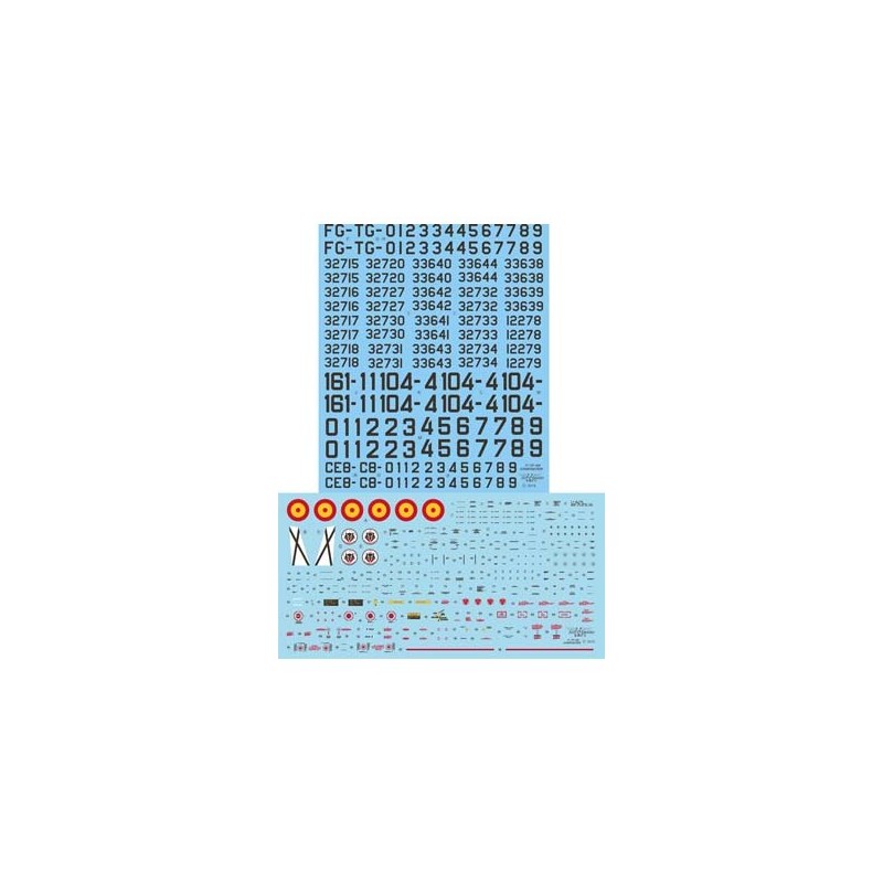 Las calcas incluyen todas las numeraciones desde el año 1965 a 1972, todos los stencils y los escudos de ambos escuadrones.