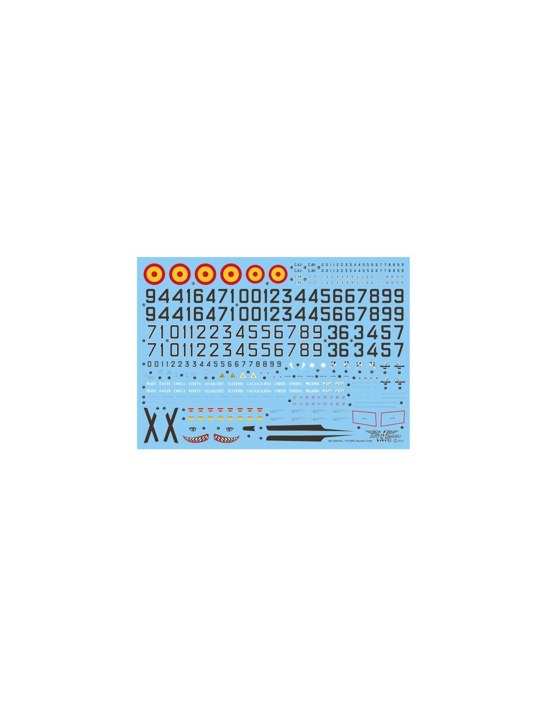 The Spanish "MESSER", HA-1109-K1L "Tripala" / HA-1112-M1L "Buchón" manufactured by Hispano Aviación. Includes the decals for the grey scheme of the "Tripala" and blue or silver grey of the "Buchón" from all the squadrons in which they served from 1954 to 1966: