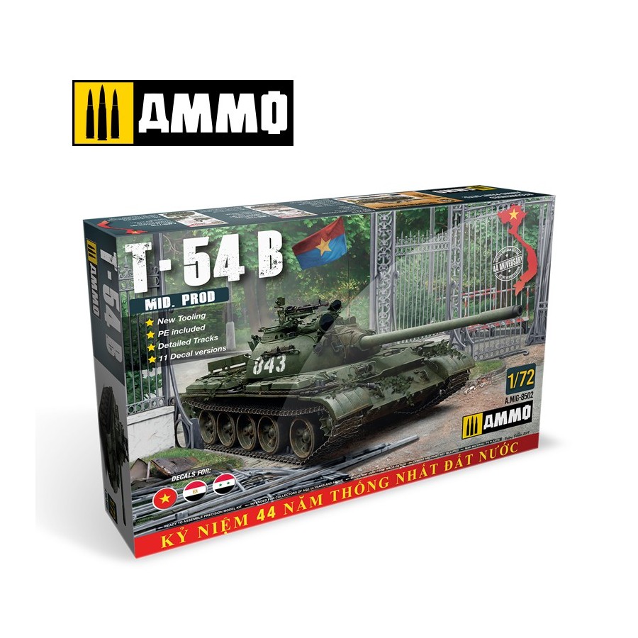 The 1st independently designed AMMO by Mig Jimenez plastic model kit in 1:72 scale. For this momentous product release, we have chosen the world renowned Russian designed T-54B, an equally exciting subject. This universally admired battle tank has served scores of nations around the globe and endured more than a half century of conflict. Our professional vehicle research and access to running examples for measurements has resulted in a marvel of accuracy in this fine scale replica.