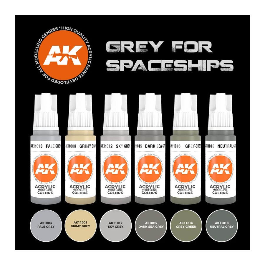 This set contains 6 acrylic paints essential for painting any grey figure or spaceship model, making the proper shop transitions between the shades to achieve a realistic look. They can be applied by brush, taking advantage of the 3rd generation high coverage and adhesion. When diluted with dedicated thinner, they can be airbrushed as easily as lacquer-based paints.