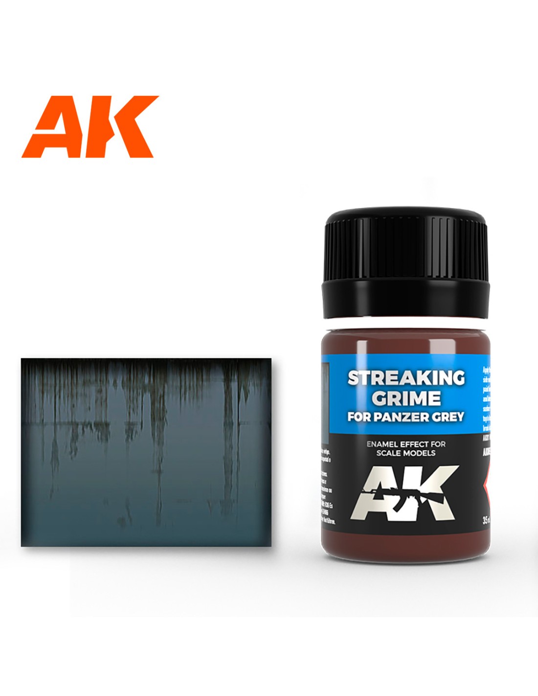 Un color muy especial para hacer los efectos de suciedad escurrida en tus vehículos alemanes pintados en color Gris panzer. Agita bien este color esmalte 8enamel) y pinta líneas verticales en los laterales. Después, difumínalas con un pincel limpio para crear efectos realistas de suciedad escurrida.