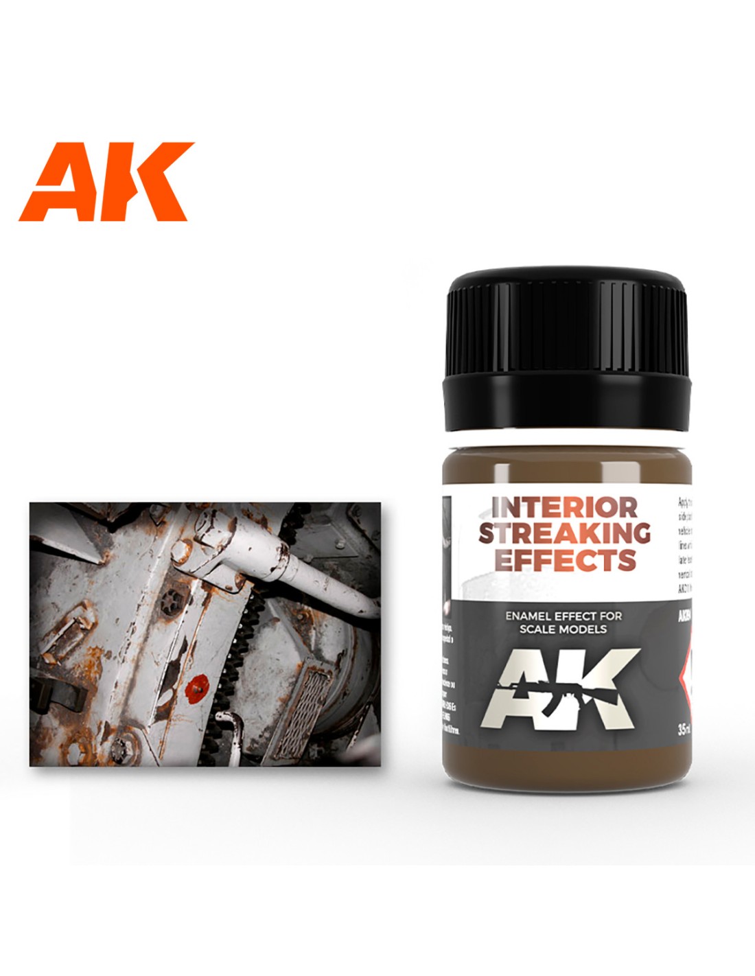 Con este esmalte podremos realizar efectos de suciedad escurrida en los tonos claros del interior de nuestros vehículos, como el RAL 9001 Cremeweiss o el blanco. Solo hay que pintar líneas verticales y difuminarlas con un pincel plano humedecido en White Spirit.