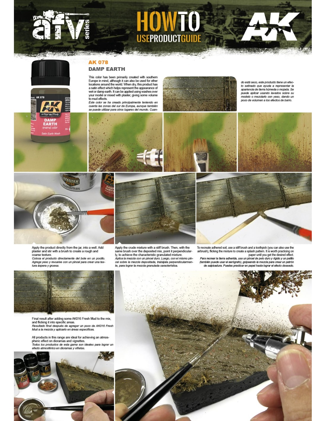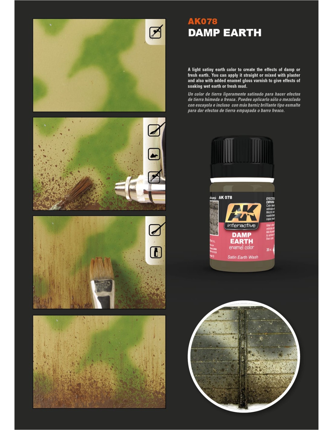 Este color es propio de lugares del sur de Europa, aunque puede ser utilizado en muchos lugares del mundo. Este color ofrece un aspecto satinado cuando esta seco, lo que ayuda a representar el aspecto de tierra mojada o tierra humedecida. Puedes aplicarlo en lavados sobre tu maqueta o mezclarlo con escayola (Blaster) para hacer efectos de barro con volumen.