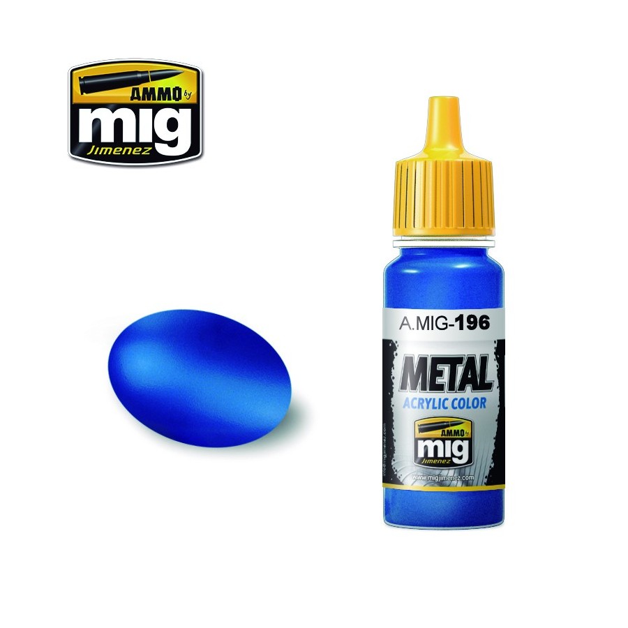 Ideal modern munitions, historical figures, and Sci-Fi details. Realistically replicate the bright appearance of Warhead Metallic Blue on any subject. Acrylic Metal Colors are formulated for maximum performance with both brush and airbrush. 17ml jar. Water soluble, odorless, and non-toxic. Each jar includes a stainless steel agitator to facilitate mixing, shake well before each use. We recommend A.MIG-2000 Acrylic Thinner for proper thinning. Dries completely within 24 hours
