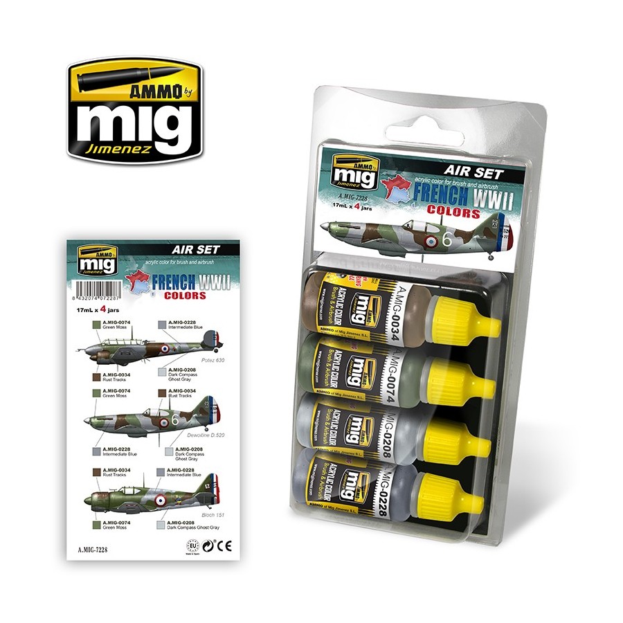 High-quality acrylic paint set includes all 4 colours used to accurately apply the camouflage for French aircraft during World War II, including Free French and Vichy French schemes. These references are accurate for the Morane-Saulnier MS.406, Potez or the well-known Dewoitine D.520 among others.