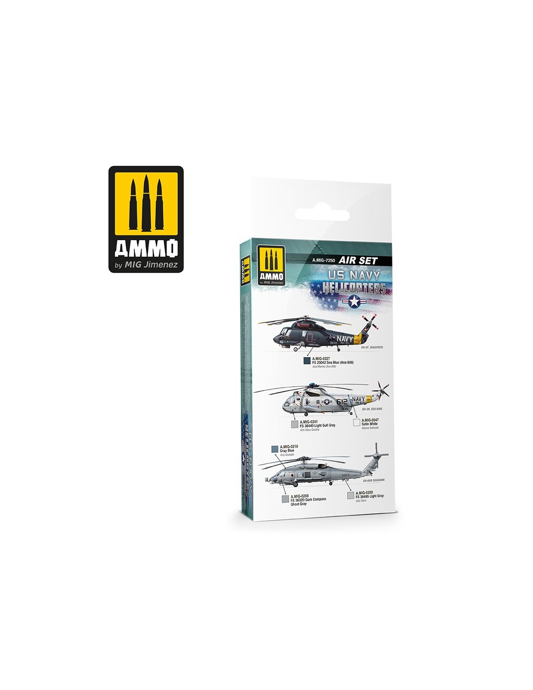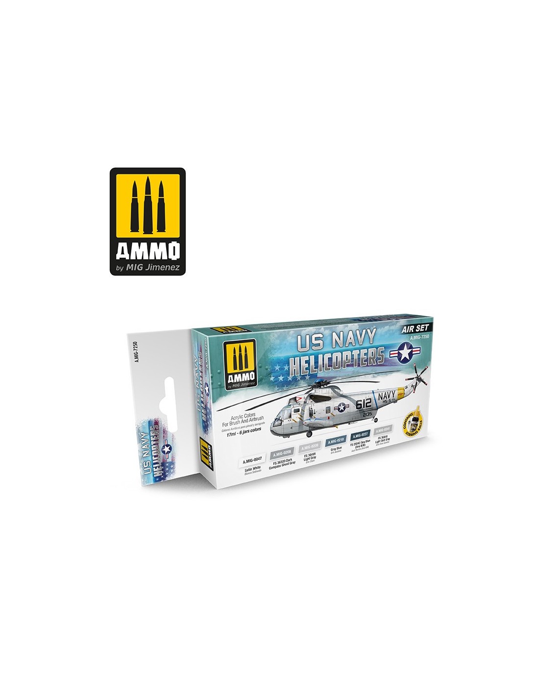 This set includes the necessary colours to paint the mythical SH-2 Seasprite, SH-3 Sea King or SH-60 Seahawk, and many others. These colours are accurately and slightly lightened for scale reduction effect on any kit. Includes four colours in 17 mL bottles. All products are acrylic, have been formulated for maximum performance with either brush or airbrush and are water-soluble, odourless, and non-toxic. Shake well before each use. Each jar includes a stainless steel agitator to facilitate mixture. We recommend A.MIG-2000 Acrylic Thinner for correct thinning. Dries completely in 24 hours.
