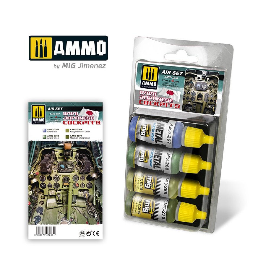 High-quality acrylic colours designed to accurately paint the cockpits of most Japanese aircraft flown during WWII, including aircraft from both the early war years and the final campaigns of the conflict. This set resolves problems of mixing proper ratios and accurate colours for the interior surfaces of WWII Japanese planes, saving precious modelling time while delivering ease of application. Among the aircraft that can be painted with this set are the well-known A6M Zero, D3A Val, Ki-43 Oscar, Ki-84 Hayate or Ki-61 Hien among others.