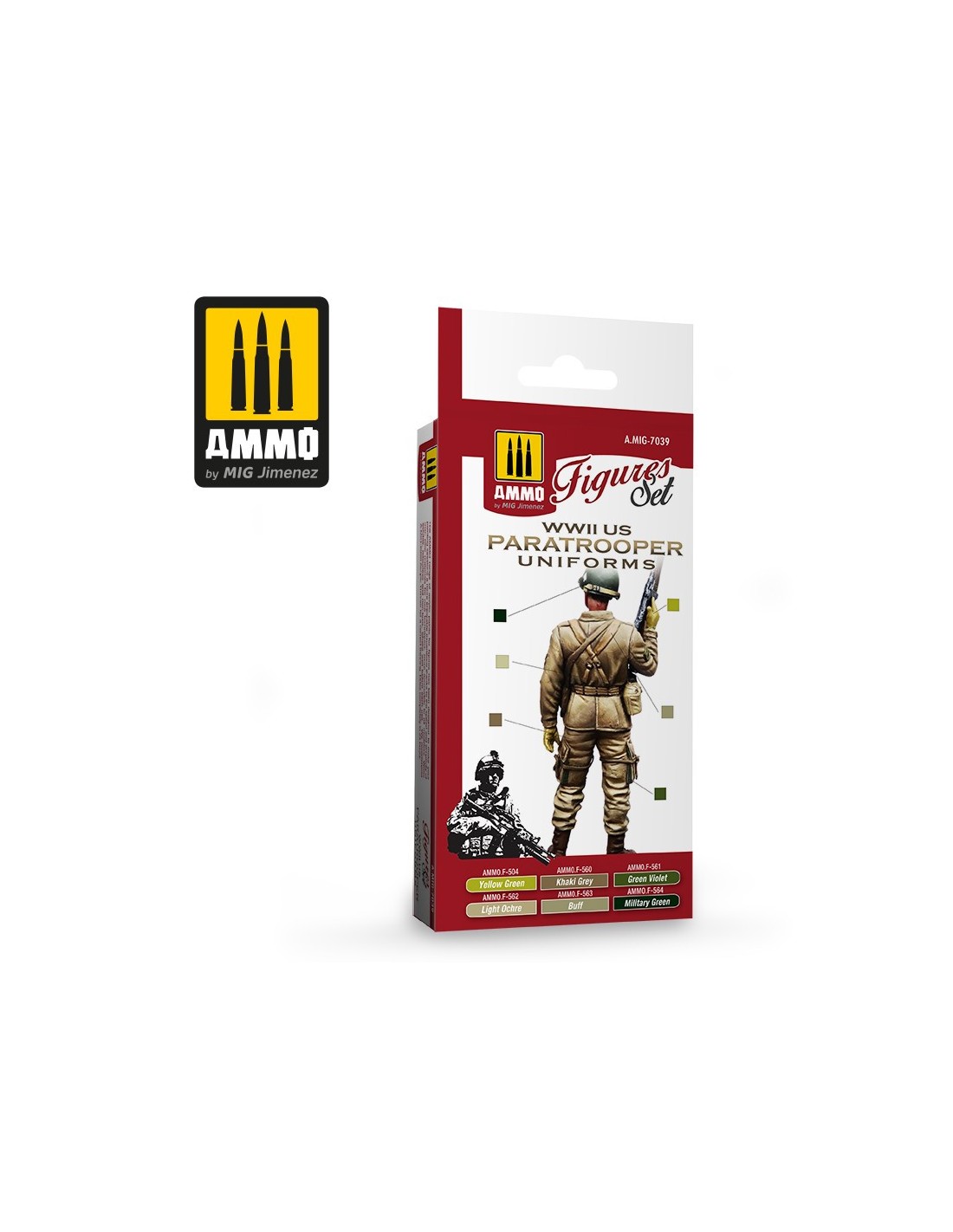 This pack includes all 6 colours required to paint the standard uniform of American paratroopers during World War II. This includes the famous 82nd and 101st Airborne Divisions from Operation Overlord (D-Day) to the end of the conflict. The colours have been selected through rigorous research of period equipment, allowing you to accurately paint the base tones of uniforms, add highlights, and enhance details.