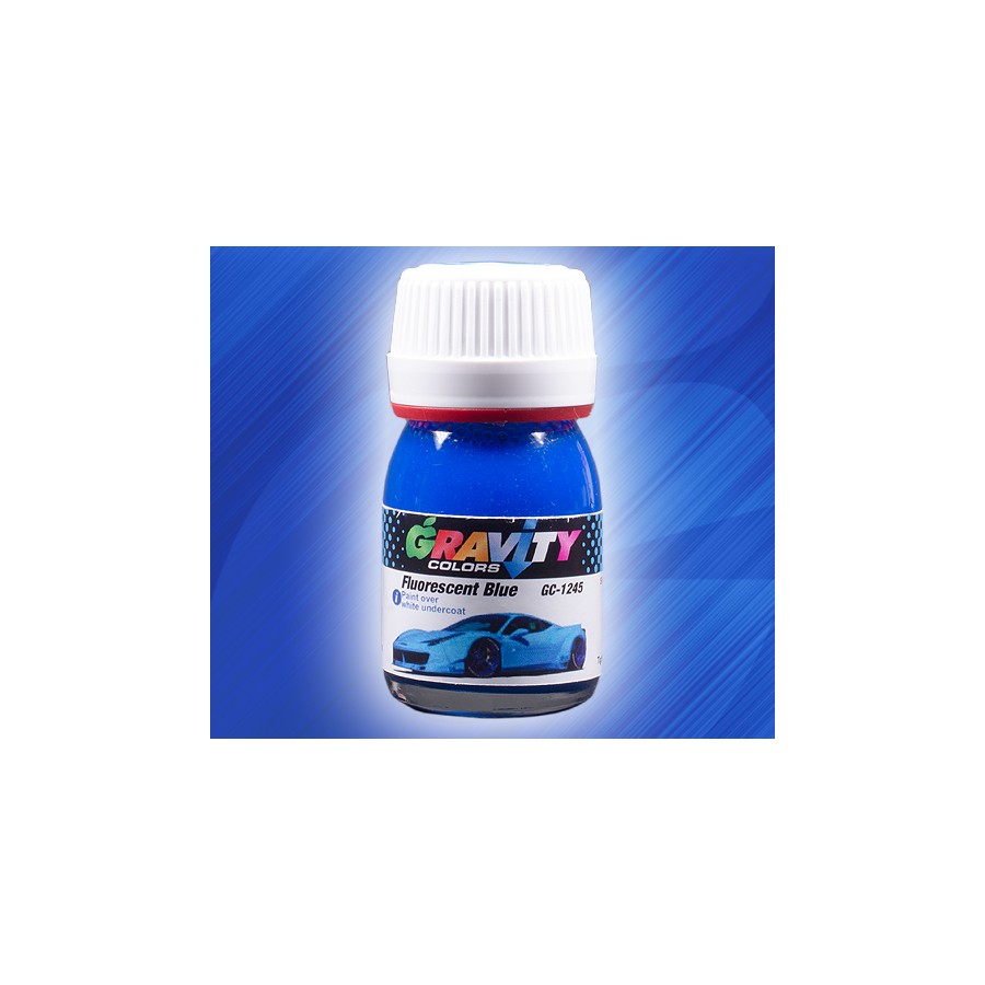 Fluorescent blue color. Due to its low opacity This paint needs to be painted over a WHITE UNDERCOAT! (Not primer)
