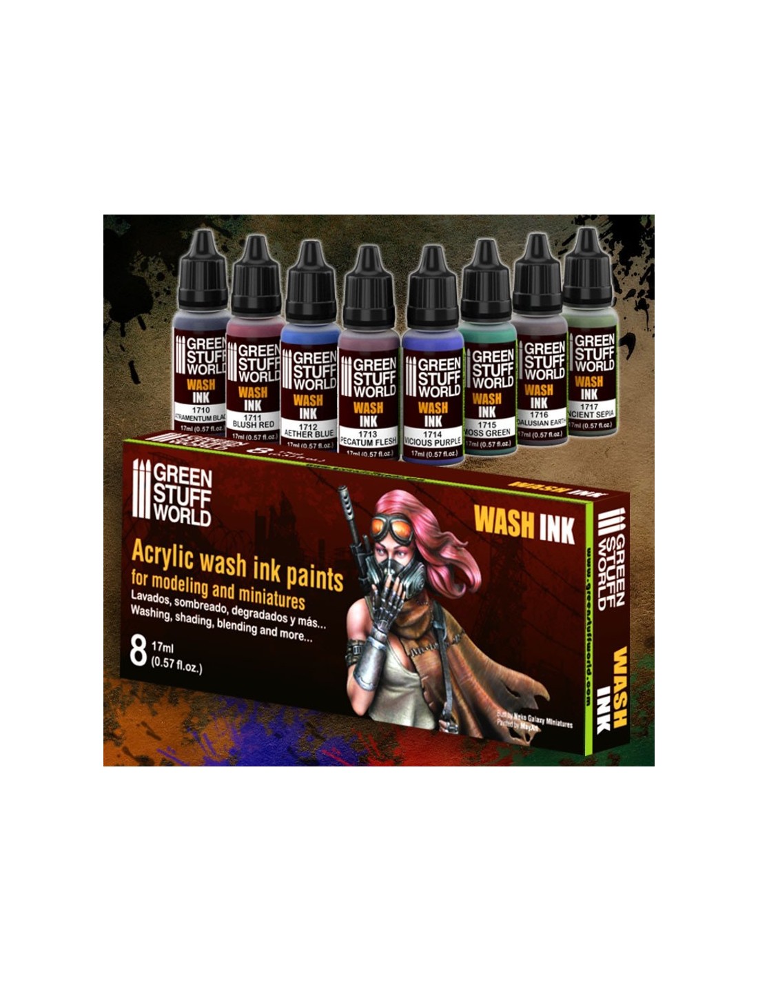 Green Stuff World's range of Wash Inks, carefully formulated to flow into the cracks, creases, crevices and other recesses of the figure, providing natural realistic shading and highlighting detail with precision and ease. Matt finish.
