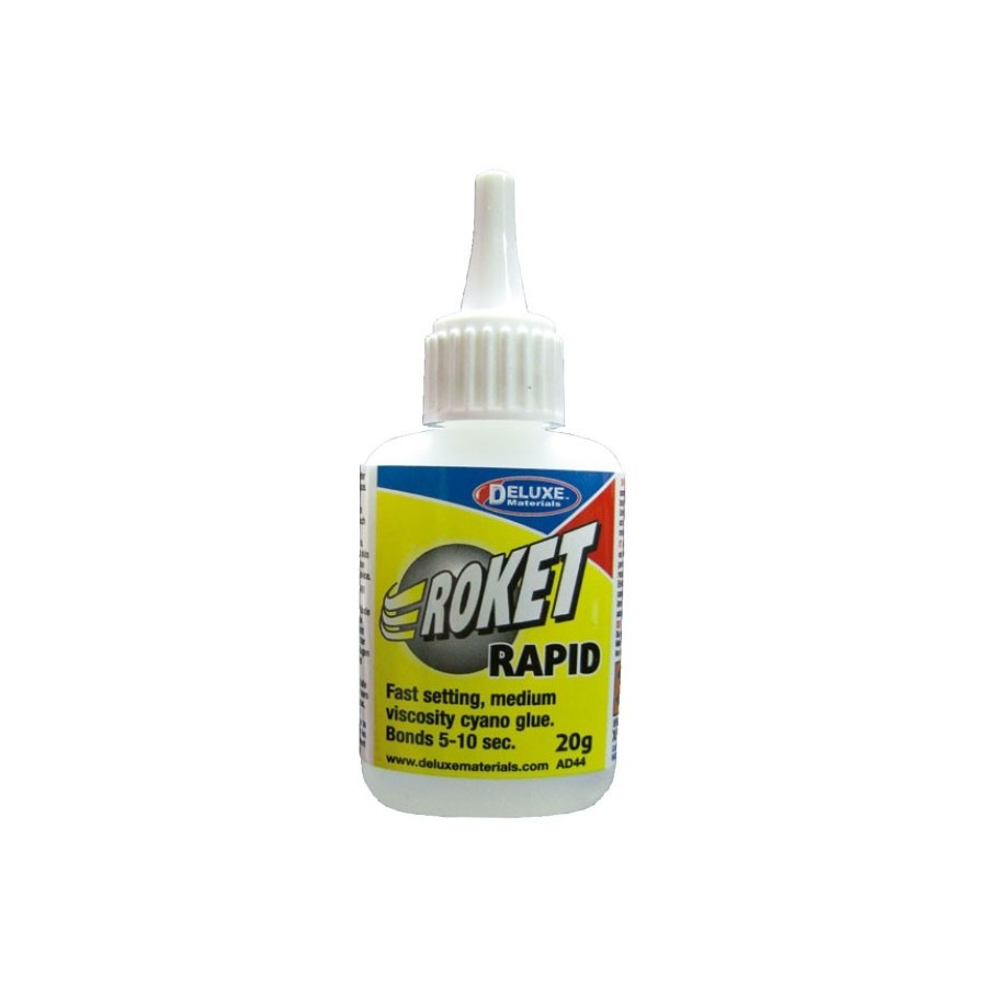 Roket Rapid: Medium viscosity, fast setting adhesive; sets 5-10 sec.