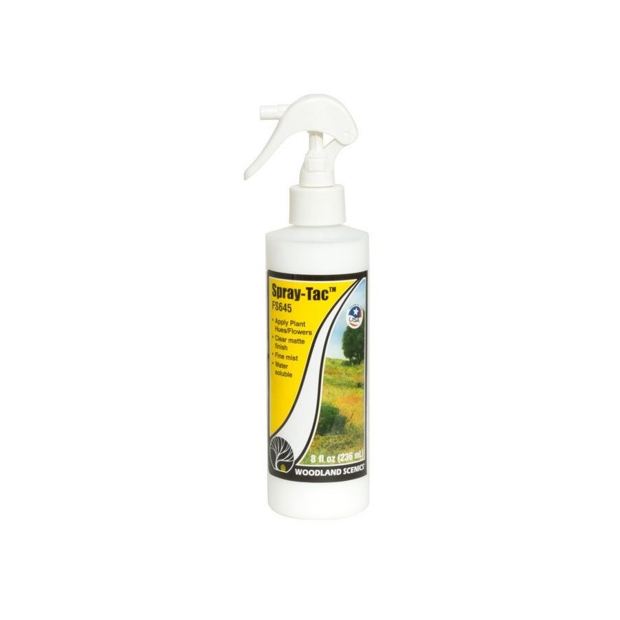 Spray-Tac is a spray adhesive for adhering Flowers and Plant Hues. It sprays in a fine mist and dries to a clear, matte finish.