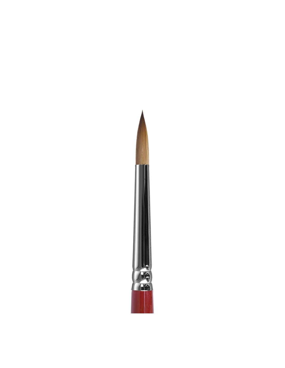 Round brush from top quality finest Siberian kolinsky hair is an irreplaceable tool for watercolor, oil and miniature painting. Natural elasticity of kolinsky hair allows to work in impasto technique. The extensive color absorbing ability is achieved by hair stiffness at the connection to cooper chrome-plated ferrule. The brush holds a needle-sharp point, which is necessary for subtle and detailed work. Handle has glossy chemical-resistant covering. This series is packaged in a transparent plastic tube for safe transportation and extra protection