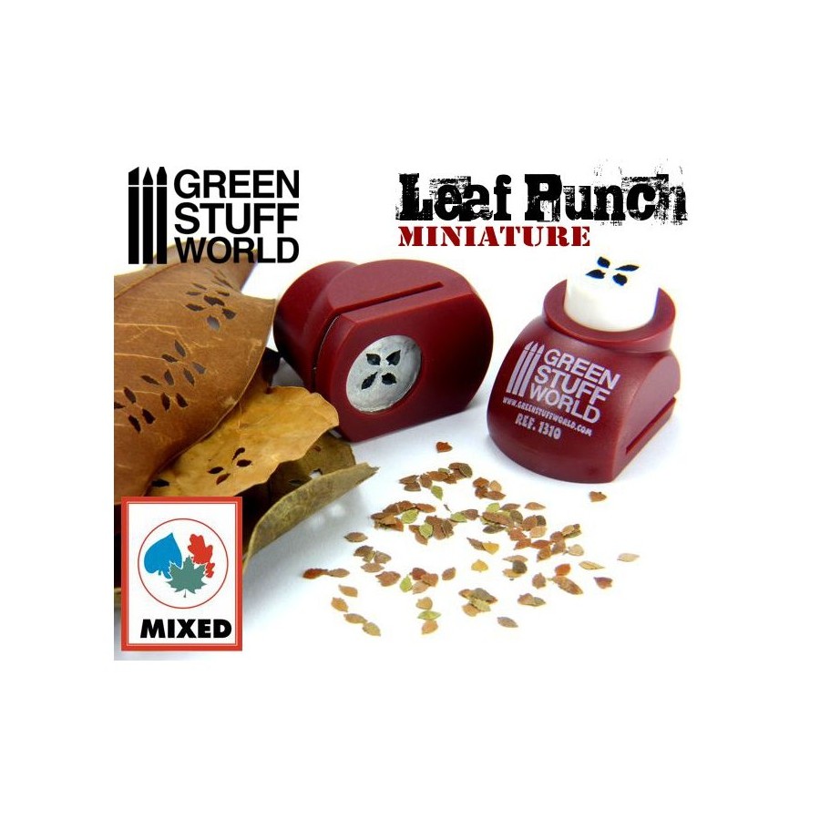 Perforadora para fabricar hojas en miniatura compatibles con escalas de 1:65 1:48 1:43 1:35 1:30 1:22. Se pueden utilizar diversos tipos de papel y materiales, aunque nosotros recomendamos el uso de metal flexible disponible en nuestra tienda, aquí.