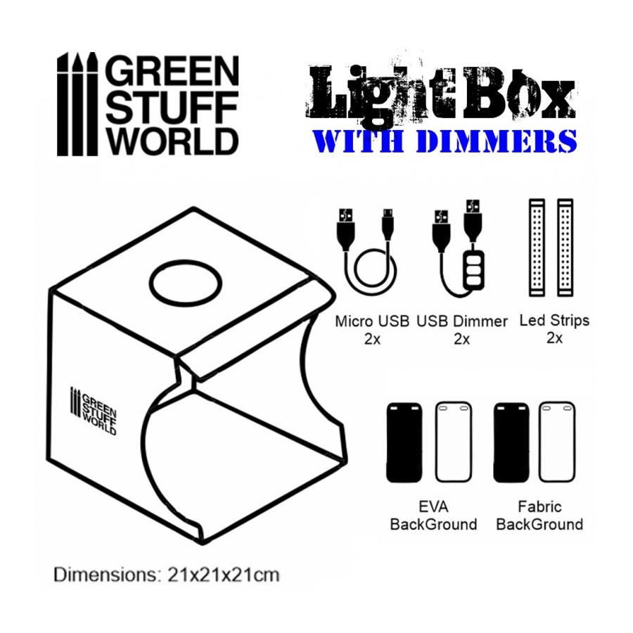 The portable Lightbox Studio is specifically designed for the photography of small items. Photography enthusiasts and beginners alike can take professional-looking shots. It is portable and can be carried anywhere thanks to its ability to fold in a compact way. It is powered via its included USB cables which you can simply plug into any USB port, allowing you to control the power and brightness of its incorporated LED lights through their dimmer control.
