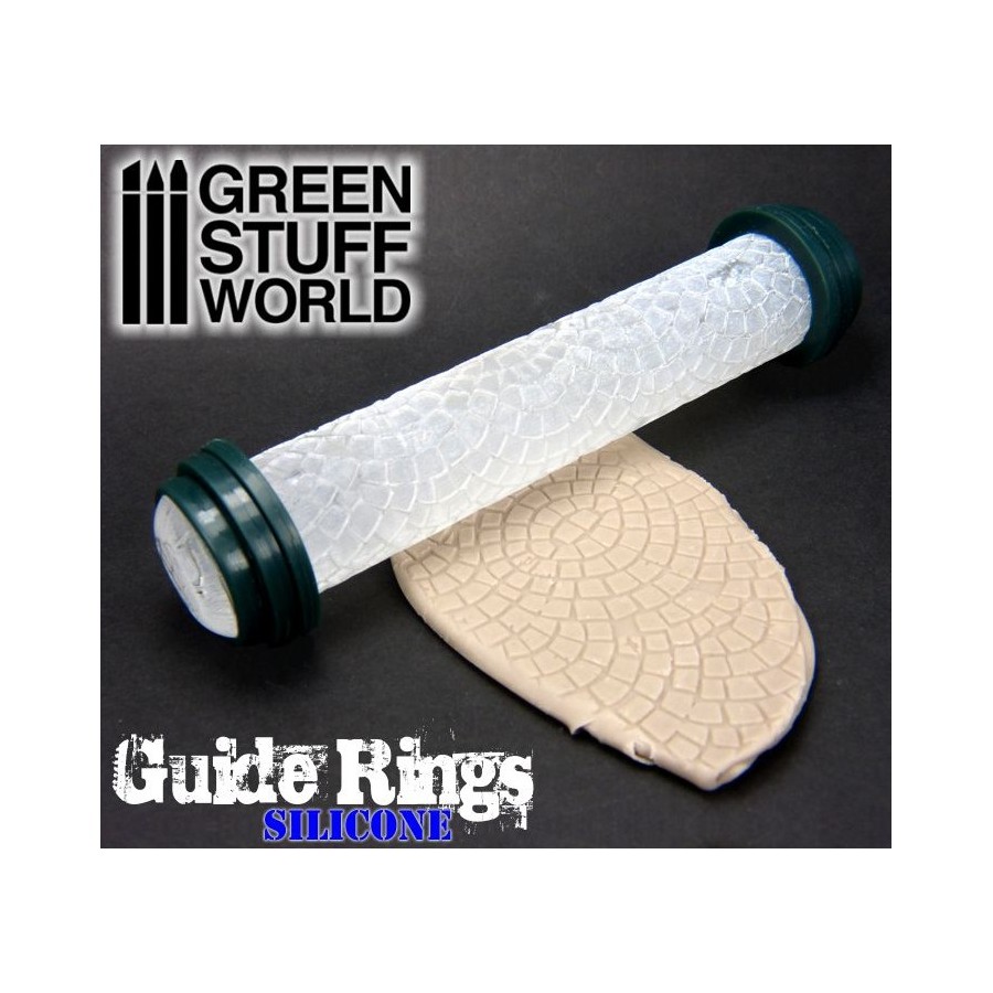 Simply slide the rings of your required putty or clay thickness onto either end of the rolling pin, and roll until the guide rings touch the work surface.