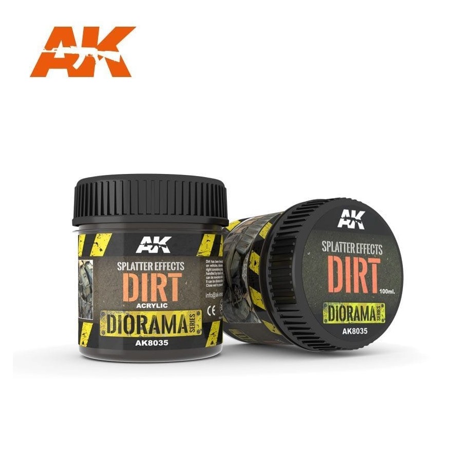 Dirt has been formulated for creating splatter effects and textures on vehicles, dioramas and vignettes. Accumulated Dirt is just the right consistency to apply in many areas and the lower parts; easily handled by brush, creating realistic textures of accumulated dirt. It can be reworked with a brush moistened in water, while it is wet.