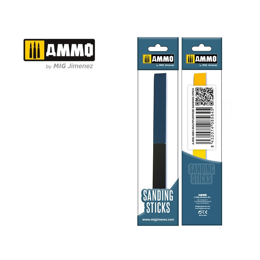 This sanding stick provides 6 different grits: 150/240/320/600/1200/2000, ideal for any sanding job covering a wide range of applications. Each grit area is easily identifiable thanks to their different colours. The flexibility of the material easily conforms to any shape, including rounded surfaces. The coarser grit range can be used on a full range of materials including resin, metal, wood and, of course plastic. The 2000-grit area will allow you to eliminate small defects and blemishes, even on clear plastic parts or previously painted surfaces.