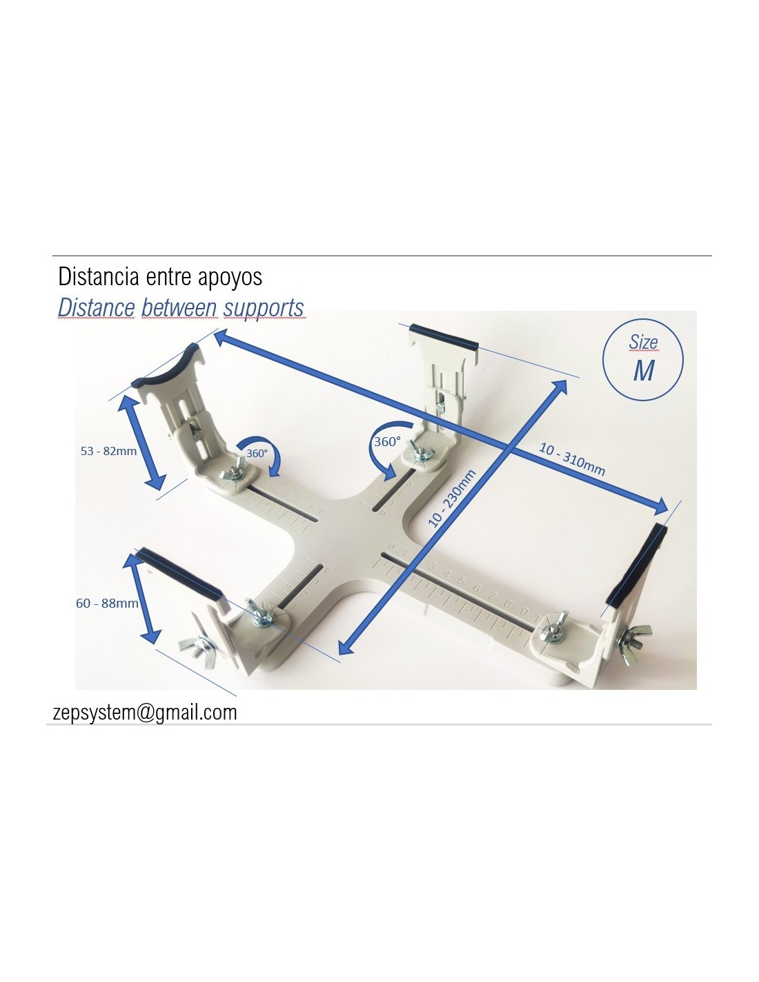 - Size M (Medium), with a maximum distance between supports of 230 mm for the wings and 310 for the fuselage. Valid for 1/72 large and 1/48. It fits on an A4 size mat.