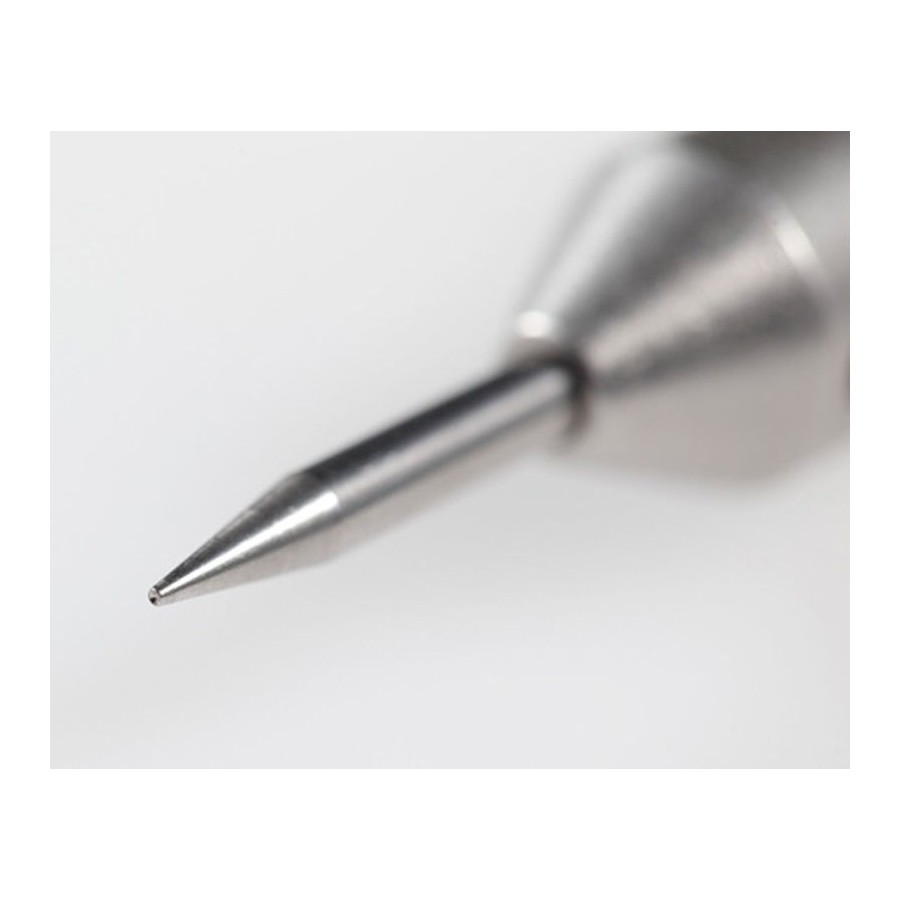 Mr. Rivet Marking is a tool for reproducing the appearance of rivets in aircraft and tank models.The tip part rotates when the main body is pushed down,so without pressing it hard you can make sharp and even shaped rivet heads.