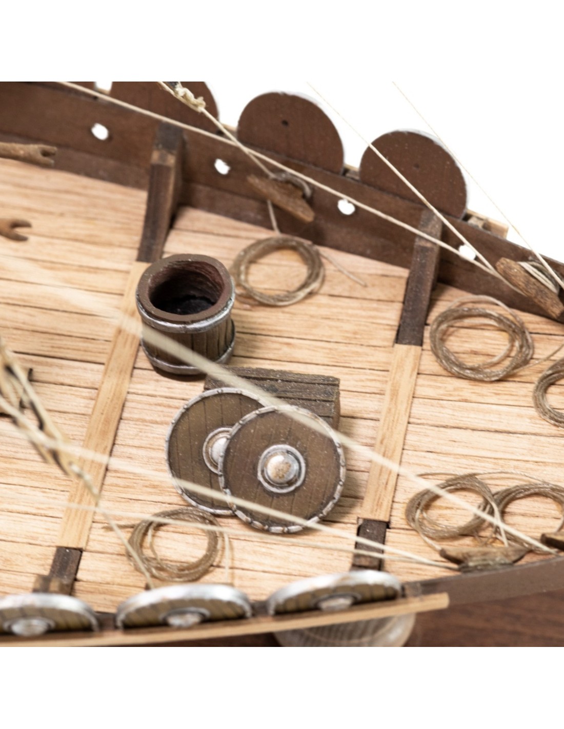 Protegida por bordes altos, con la traca de tablazones superpuestos, el drakkar debía tener características de ligereza y de máxima maniobrabilidad.