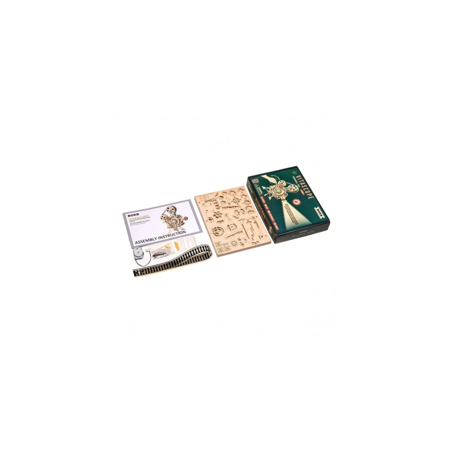 Robotime DIY movie projector Vitascope LK601 can play movie for real! Classic design with hand crank generator, it will satisfy movie lovers both in crafting and playing. Put the mechanism together piece by piece, and put on the black& white film. Enjoy a cinema together with friends and family!