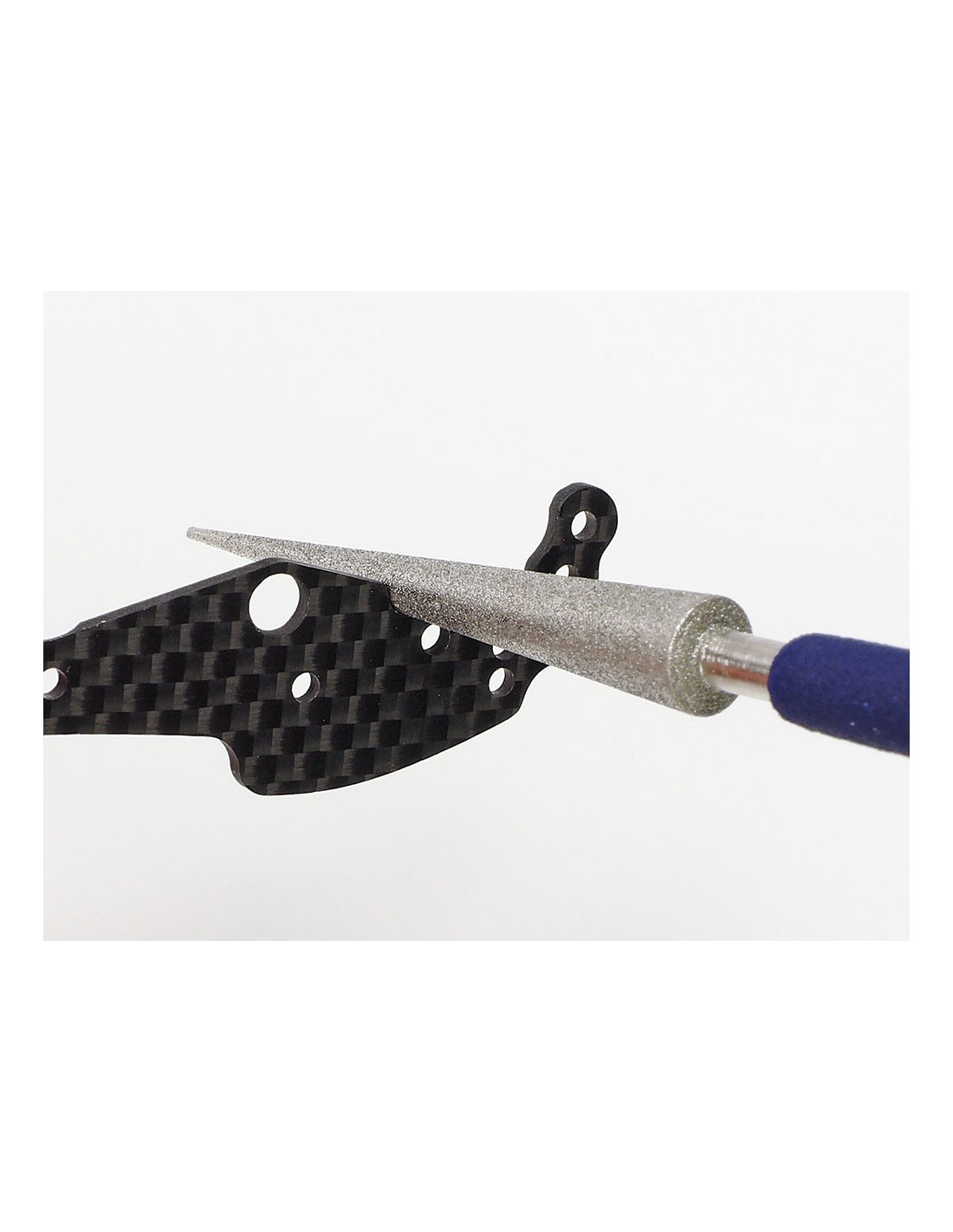 Esta lima de diamante cónica presenta un grano fino, y es especialmente útil para trabajos como dar forma a agujeros y redimensionar componentes como tubos.