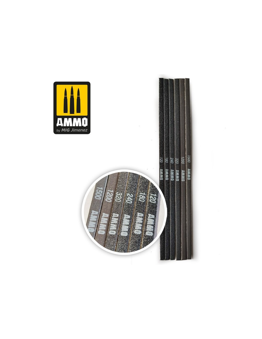Ideadas para su uso de precisión sobre piezas pequeñas, delicadas o en lugares de difícil acceso. Esto es posible gracias a sus escasos 4mm de ancho. Es recomendable emplear los primeros granos para ir eliminando los defectos más difíciles poco a poco, mientras que podemos utilizar los dos últimos para obtener el acabado más fino y suave, dejando la superficie lista para pintar. Con ella, podremos trabajar todo tipo de materiales ya sean resina, metal, madera o, por supuesto, plástico. Se puede usar tanto en seco como humedecidas en agua.