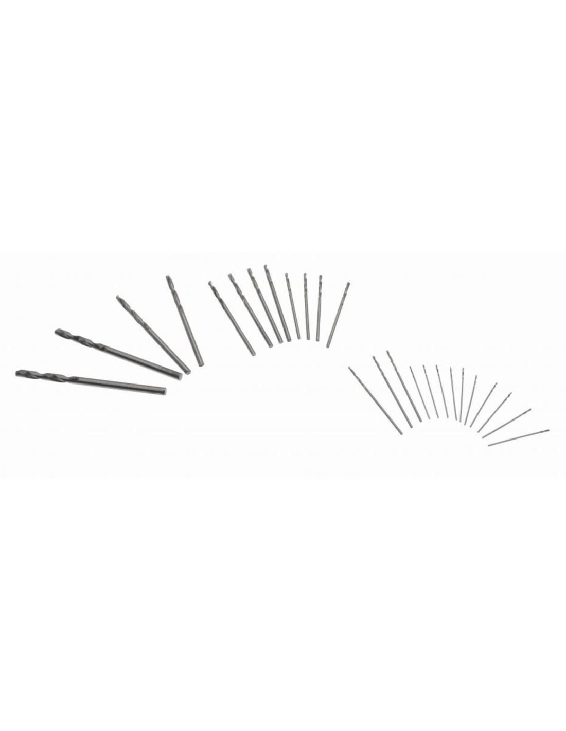 Brocas de acero en medidas USA (AWG). Incluye estuche con tapa deslizante. Set de 20 minibrocas en acero, de alta velocidad, en estuche y medidas indicadas, excelente para guardar las brocas con seguridad y dispensar únicamente la broca seleccionada.