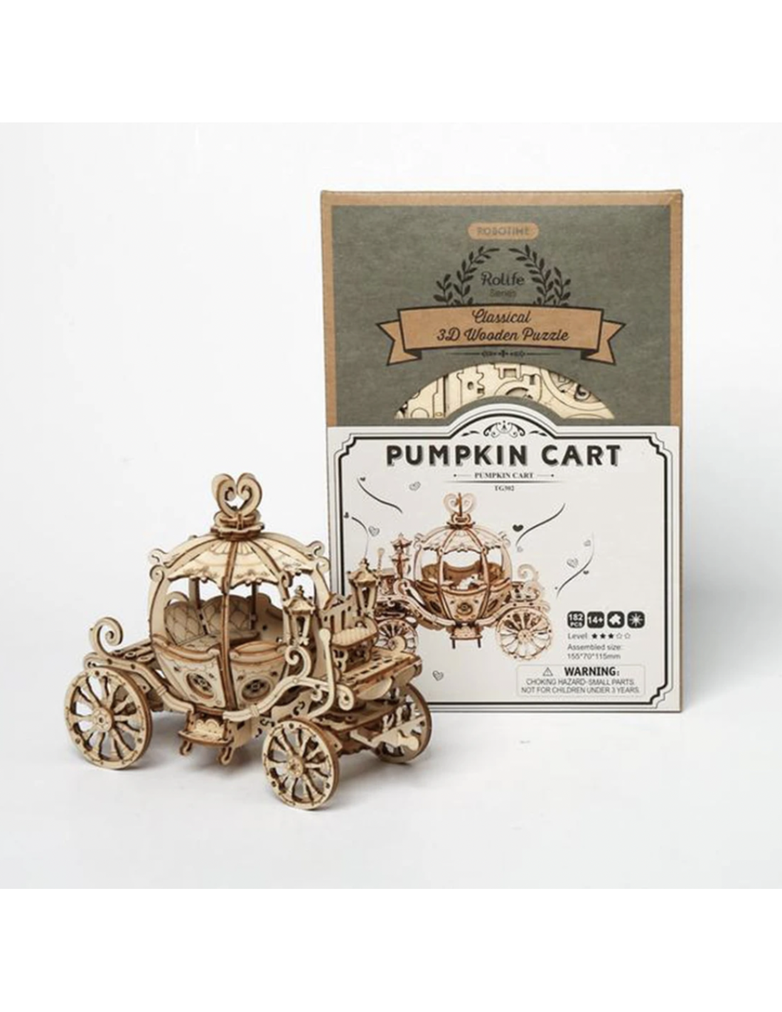 Robotime-Rolife Pumpkin Carriage TG302 es una manualidad de madera fácil de hacer para el tiempo libre. Gran rompecabezas de madera 3D y juguete para los adultos y los niños. Es el mejor juguete educativo y el mejor regalo para las fiestas (como Navidad, cumpleaños) para niños y niñas, adolescentes y adultos, y para la decoración del hogar.