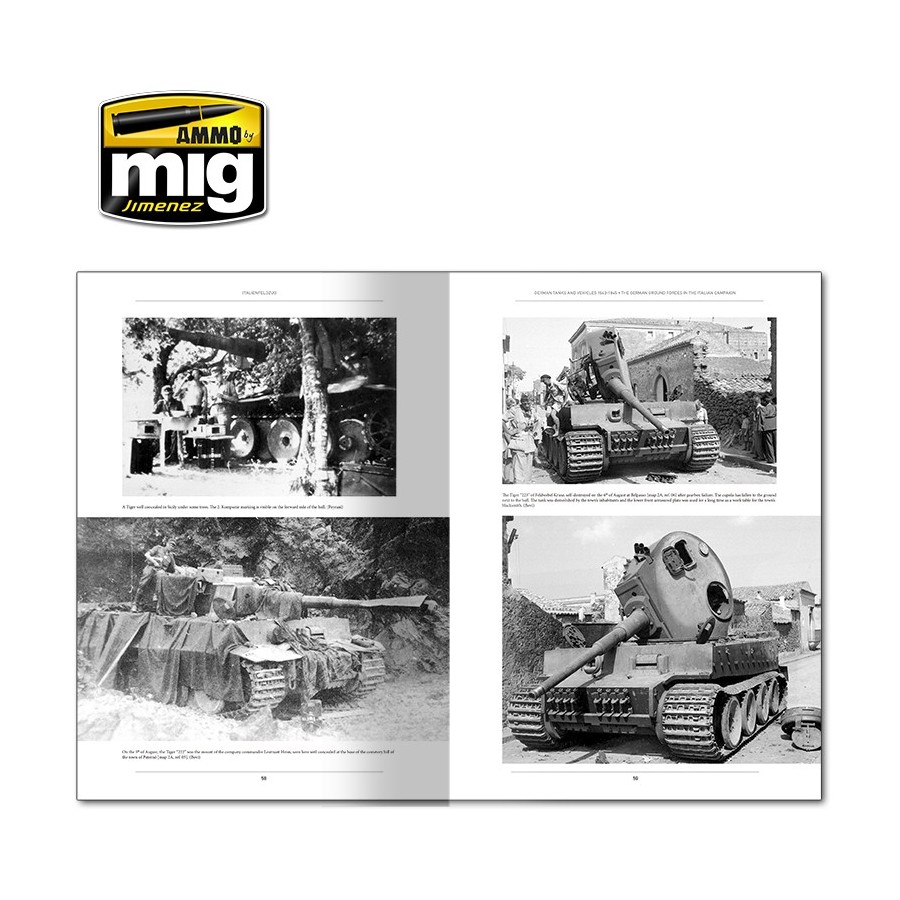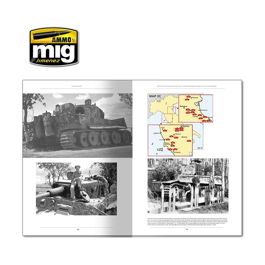 Este primer volumen de la colección ITALIENFELDZUG explora en profundidad el carro de combate Tiger, los cazacarros Elefant y Hetzer, los cañones autopropulsados Wespe y los vehículos de demolición teledirigidos. Las 250 páginas contienen más de 400 fotografías de gran tamaño, 23 mapas, 11 perfiles en color, e incluyen emblemas y reproducciones de documentos originales.